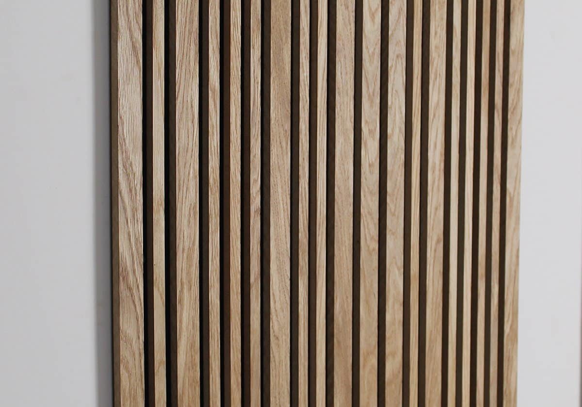 Our acoustic panels are typically 2800 x 600 x 20 mm and 2400 x 600 x 20 mm in size and treated with linseed oil. However, there exists an unlimited number of options in terms of size and finish if you need it.
